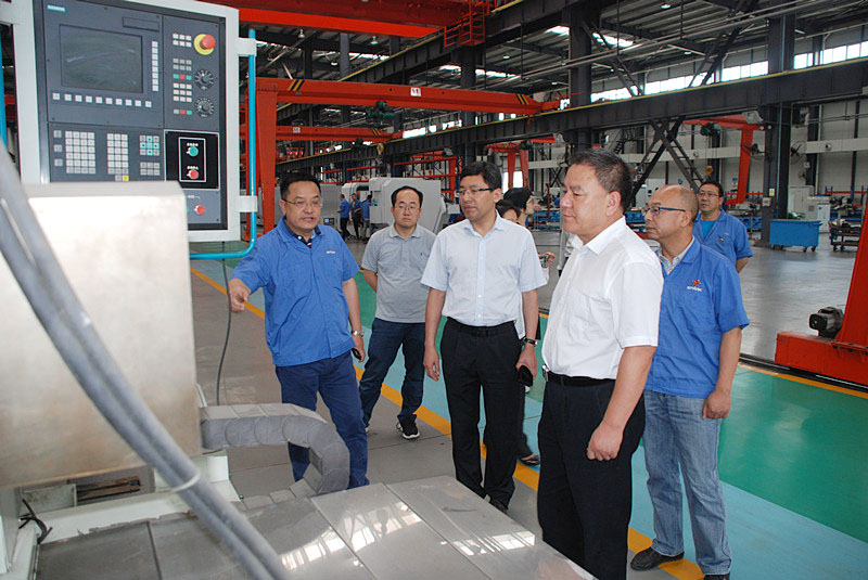 在蔣保權(quán)、蔣俊等領(lǐng)導(dǎo)的陪同下,劉軍一行深入企業(yè)生產(chǎn)現(xiàn)場,參觀了重型、大型、數(shù)控產(chǎn)品,了解了企業(yè)目前生產(chǎn)經(jīng)營情況和產(chǎn)品研發(fā)、市場銷售等,重點了解了企業(yè)境外投資規(guī)模、效益及需要協(xié)調(diào)解決的問題。蔣保權(quán)詳細(xì)介紹了公司境外投資及收益情況。