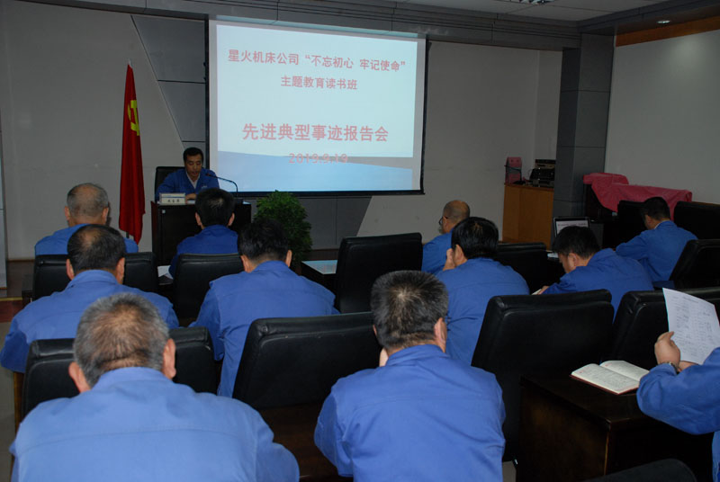 按照《中共天水市委關(guān)于開(kāi)展“不忘初心 牢記使命”主題教育的實(shí)施方案》要求,星火機(jī)床公司自9月16日開(kāi)始的為期一周的主題教育讀書(shū)班各項(xiàng)學(xué)習(xí)活動(dòng)正在如火如荼的開(kāi)展。按照學(xué)習(xí)計(jì)劃,每天上午、下午,星火機(jī)床公司 “不忘初心 牢記使命”主題教育讀書(shū)班定時(shí)開(kāi)展形式多樣的學(xué)習(xí)活動(dòng)。自9月17日、9月18日組織讀書(shū)班成員觀看警示教育片、《建國(guó)大業(yè)》革命傳統(tǒng)教育專題片后,9月19日上午,星火機(jī)床公司“不忘初心 牢記使命”主題教育讀書(shū)班在大會(huì)議室舉辦了先進(jìn)典型事跡報(bào)告會(huì)。