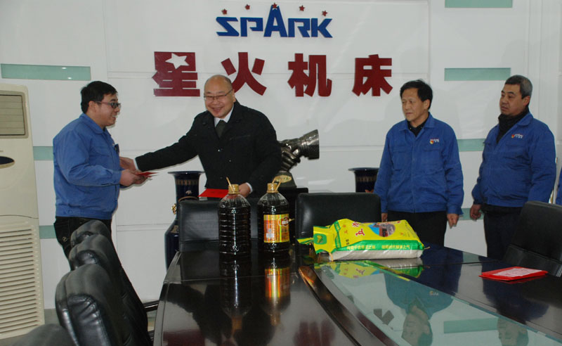 在星火機床公司小會議室,第四慰問組領(lǐng)隊、市國資委副主任江愛民,市國資委企業(yè)人事科科長王雙喜為優(yōu)秀黨員、困難黨員、老黨員發(fā)放了慰問品及慰問金,希望通過慰問活動,進一步激勵黨員干部不忘初心、牢記使命,提振干事創(chuàng)業(yè)的精氣神。并提前祝大家春節(jié)快樂,身體健康。