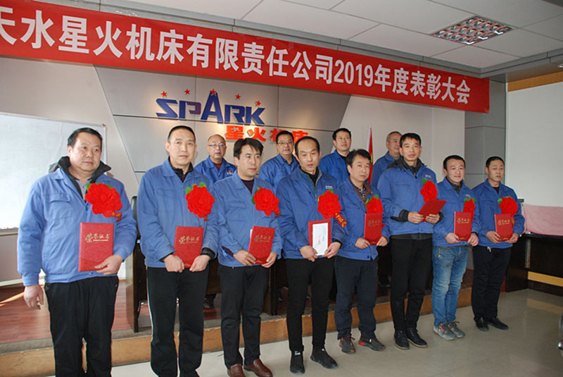星火機(jī)床集團(tuán)公司總經(jīng)理劉勝宣讀了《關(guān)于表彰2019年度先進(jìn)集體和先進(jìn)個人的決定》;集團(tuán)公司副總經(jīng)理、星火公司總經(jīng)理趙錦銘宣讀了《關(guān)于QC成果表彰獎勵的決定》。大件加工分廠、公司工會榮獲先進(jìn)集體稱號;數(shù)控精度班組、鑄木造型班組、部件加工車工段、大裝精度(80)班組榮獲先進(jìn)班組稱號。杜治軍、張志鴻、馬愛來等34位同志榮獲先進(jìn)個人稱號,受到表彰獎勵。先進(jìn)集體代表和先進(jìn)個人胸佩紅花,依次登臺領(lǐng)獎。