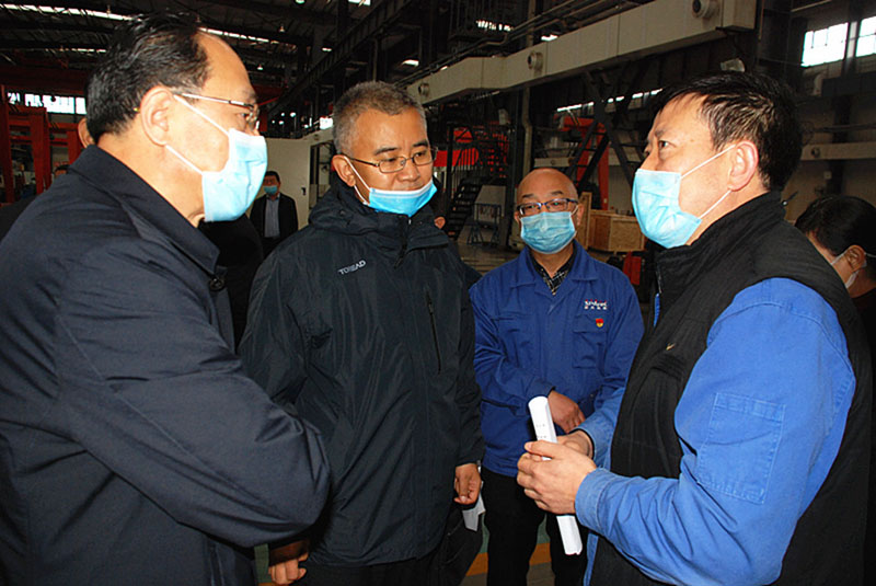 3月16日,甘肅省商務(wù)廳副廳長吳鎮(zhèn)圖帶領(lǐng)的由省商務(wù)廳市場體系建設(shè)處副處長郝昊、省農(nóng)業(yè)農(nóng)村廳產(chǎn)業(yè)處副處長劉學(xué)榮、省政府國資委綜合處三級調(diào)研員包欽組成的省政府督查組一行,在天水市委常委、常務(wù)副市長趙四輩,市發(fā)改委、市商務(wù)局、市工信局、市農(nóng)業(yè)農(nóng)村局及麥積區(qū)政府、區(qū)有關(guān)部門領(lǐng)導(dǎo)陪同下,來星火機床公司調(diào)研,督查企業(yè)疫情防控和復(fù)工復(fù)產(chǎn)有關(guān)政策落實情況。星火機床集團(tuán)公司領(lǐng)導(dǎo)劉勝、蔣俊、趙錦銘接待并陪同參觀生產(chǎn)現(xiàn)場、匯報工作。