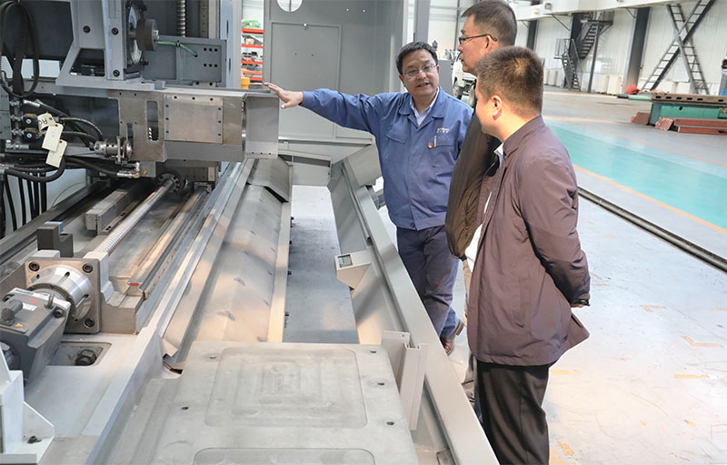 參觀過(guò)程中,蔣保權(quán)向楊擁軍一行詳細(xì)介紹了星火機(jī)床公司各類產(chǎn)品,尤其是大、重型產(chǎn)品以及進(jìn)口設(shè)備的使用情況。楊擁軍一行參觀了企業(yè)展廳后,前往公司本部進(jìn)行座談交流。
