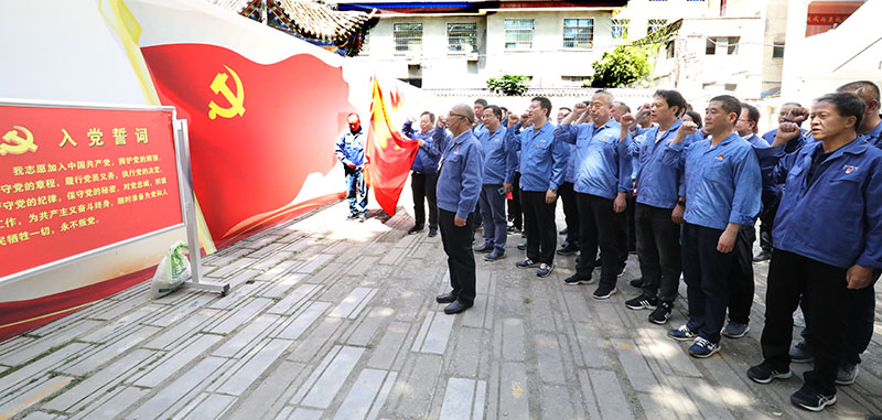 在徽成兩康戰(zhàn)役紀(jì)念館,星火機(jī)床集團(tuán)及公司領(lǐng)導(dǎo)和黨員干部面對(duì)鮮紅黨旗,整齊列隊(duì),在黨委副書記蔣俊同志的帶領(lǐng)下重溫入黨誓詞。隨后,紀(jì)念館講解員講解了1936年紅二方面軍在徽(縣)成(縣)兩(當(dāng))康(縣)戰(zhàn)役中,毛澤東安排有關(guān)兩當(dāng)、徽縣工作的書信,紅二方面軍總指揮賀龍,政治委員任弼時(shí)、副政治委員關(guān)向應(yīng)等指揮戰(zhàn)斗的情景,參觀了賀龍贈(zèng)送給當(dāng)?shù)卣拇笞?,賀龍鬧革命的兩把菜刀(復(fù)制品)等革命文物、歷史資料照片。同時(shí)了解了當(dāng)年徽縣底下黨組織開(kāi)展斗爭(zhēng)的歷史。