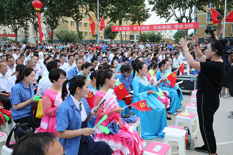 開場舞《紅色激情》拉開了演出序幕。公司各單位職工的大合唱,表達(dá)了對黨的無限熱愛和真誠祝福。《祖國不會忘記》《我宣誓》《我和我的祖國》《跟著共產(chǎn)黨走》《歌唱祖國》《東方紅》等一曲曲經(jīng)典紅歌,在背景畫面的襯托下,將觀眾的思緒引入了中國共產(chǎn)黨帶領(lǐng)人民艱難創(chuàng)業(yè)的光輝歷史中。