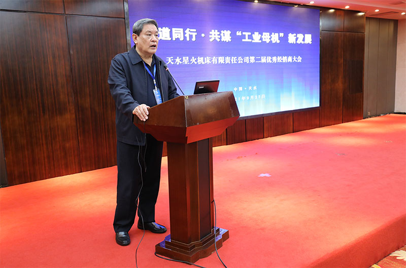 星火機(jī)床集團(tuán)公司黨委書(shū)記、董事長(zhǎng)蔣保權(quán)在大會(huì)上致辭,對(duì)各位優(yōu)秀經(jīng)銷商相聚天水,共謀發(fā)展表示熱烈歡迎。他向與會(huì)人員介紹了企業(yè)基本情況、近兩年發(fā)展變化、項(xiàng)目建設(shè)和發(fā)展規(guī)劃后說(shuō),企業(yè)與經(jīng)銷商是魚(yú)水關(guān)系,也是一家人,希望大家攜起手來(lái),共同努力,共同發(fā)展。