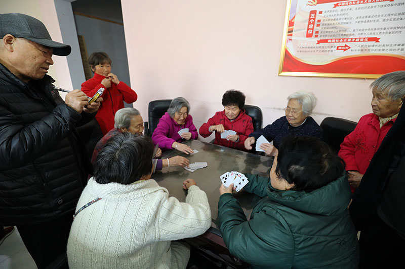 早上八點(diǎn)多,老職工陸續(xù)來到老年活動(dòng)中心。九點(diǎn)鐘,撲克比賽正式開始。一時(shí)間,活動(dòng)室內(nèi)人頭攢動(dòng),笑聲不斷。參加活動(dòng)的老職工在工作人員的組織下,六人一組,自愿組合,打撲克爭上游,一局定勝負(fù)。比賽現(xiàn)場,每張桌子前都擠滿了圍觀者。參賽者緊張有序,圍觀者興奮不已。有的是夫妻雙雙上陣,有的是兩代人共同參與。為使老職工過一個(gè)歡樂愉快的重陽節(jié),公司在資金緊張的情況下,為老職工購買了紀(jì)念品?;顒?dòng)結(jié)束后,參加活動(dòng)的老同志拿著紀(jì)念品,帶著滿臉笑容,高高興興的離去。