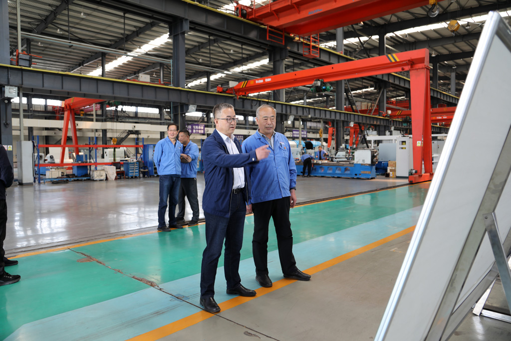在裝配車間,趙錦銘向王虎中一行介紹了企業(yè)的歷史沿革、發(fā)展變化,匯報了企業(yè)科技創(chuàng)新、市場占有率,以及一季度工業(yè)產(chǎn)值、項(xiàng)目建設(shè)進(jìn)展等。