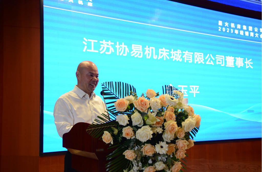 江蘇協(xié)易機(jī)床城有限公司董事長(zhǎng)金玉平代表優(yōu)秀經(jīng)銷商致辭。他說(shuō)星火機(jī)床作為發(fā)展了五十多年的“三線企業(yè)”,技術(shù)實(shí)力雄厚,品牌知名度,尤其近年來(lái)發(fā)揮自身優(yōu)勢(shì),搶抓市場(chǎng)機(jī)遇,在攻克關(guān)鍵核心技術(shù)領(lǐng)域“卡脖子”難題方面取得了一定成績(jī),拓展了一定的產(chǎn)品市場(chǎng)。我們對(duì)未來(lái)合作充滿信心,愿與星火同心同德,攜手并肩作戰(zhàn),實(shí)現(xiàn)合作共贏。