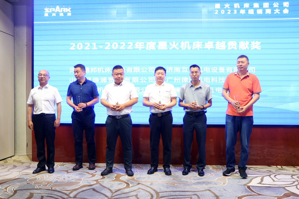 本次大會(huì)對(duì)優(yōu)秀經(jīng)銷商代表進(jìn)行了表彰,星火機(jī)床集團(tuán)公司領(lǐng)導(dǎo)現(xiàn)場(chǎng)頒發(fā)了2021——2022年度星火機(jī)床卓越服務(wù)獎(jiǎng)、開(kāi)拓先鋒獎(jiǎng)、卓越貢獻(xiàn)獎(jiǎng)、最佳營(yíng)銷獎(jiǎng)等獎(jiǎng)項(xiàng)。