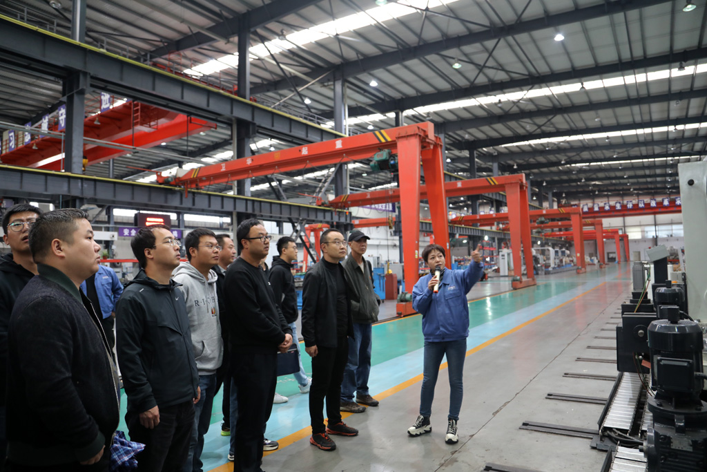 星火機床集團公司黨群工作部部長蔡建欣及公司質(zhì)檢部副部長羅崇寶接待來訪人員并陪同參觀現(xiàn)場。