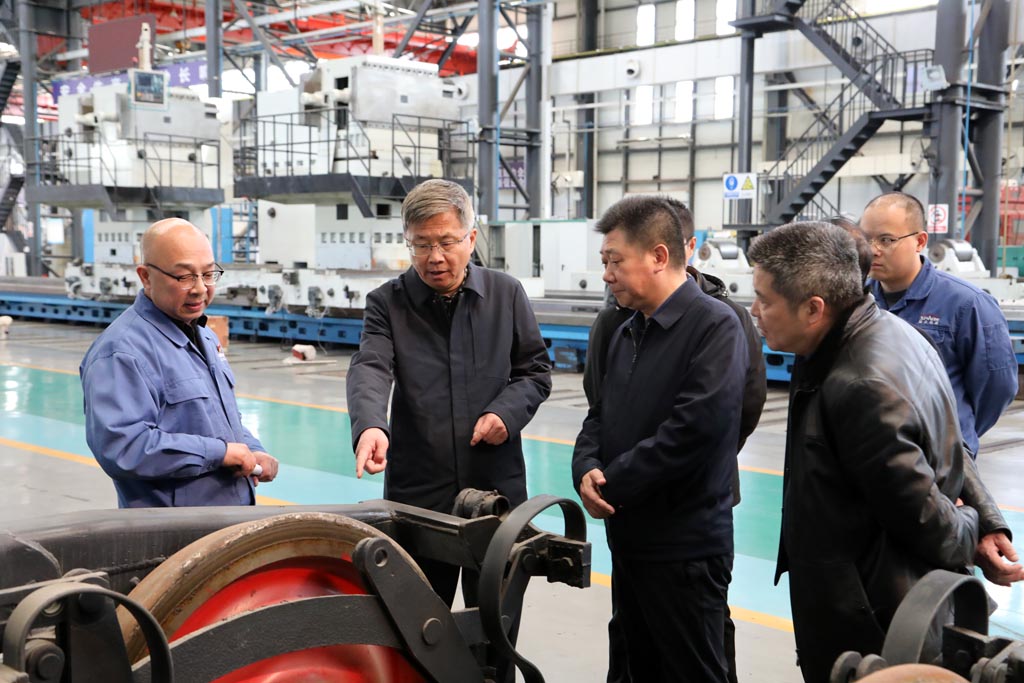 蔣俊、展海瑜陪同李斌一行首先深入工業(yè)園裝配現(xiàn)場,參觀了星火機床公司研發(fā)生產(chǎn)的大型數(shù)控機床、重型機床及星火青重公司生產(chǎn)的車輪車床等產(chǎn)品,介紹了各種機床產(chǎn)品的特點、用途和市場前景。隨后,前往加工車間參觀了公司主要生產(chǎn)設(shè)備。調(diào)研中,蔣俊匯報了企業(yè)近幾年的生產(chǎn)經(jīng)營指標(biāo)、今年計劃、科技創(chuàng)新、改革改制和未來發(fā)展規(guī)劃等。