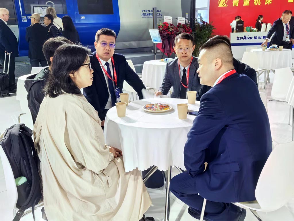 星火機床集團公司攜大型五軸銑車復(fù)合加工中心、高端五軸銑車復(fù)合加工中心、青重精密數(shù)控銑車復(fù)合機床、數(shù)控臥式車床亮相展覽會。開幕當(dāng)天,星火機床展位引人注目,國內(nèi)外相關(guān)專家學(xué)者、新老客戶前來參觀、洽談合作。
