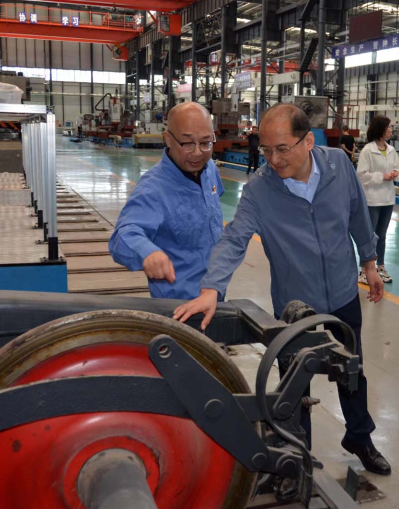 座談后,蔣俊等陪同周建平一行深入生產(chǎn)現(xiàn)場實(shí)地考察,先后參觀了公司為國家關(guān)鍵領(lǐng)域重點(diǎn)項(xiàng)目建設(shè)研發(fā)生產(chǎn)的重型、大型、精密臥式車床產(chǎn)品、目前國內(nèi)領(lǐng)先的大型五軸聯(lián)動(dòng)銑車復(fù)合加工中心,以及星火青重公司的數(shù)控車輪車機(jī)床等廣受市場歡迎的高精產(chǎn)品。