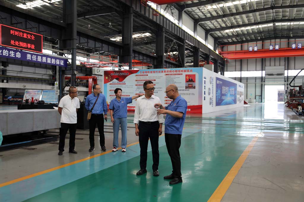 周勝一行在蔣俊陪同下深入工業(yè)園加工車間、裝配車間以及青重公司生產(chǎn)車間,參觀了裝配中的各類車床產(chǎn)品,了解了車床裝配流程。考察中,蔣俊就公司生產(chǎn)經(jīng)營、市場(chǎng)規(guī)模、智能制造、人才培訓(xùn)、科技研發(fā)等情況向周勝一行作了介紹,并結(jié)合裝配中的產(chǎn)品介紹了五軸聯(lián)動(dòng)機(jī)床、軋輥磨床以及青重車輪車機(jī)床等產(chǎn)品的性能特點(diǎn)、市場(chǎng)前景以及應(yīng)用領(lǐng)域等。蔣俊說,星火機(jī)床作為曾經(jīng)的“三線”企業(yè),經(jīng)過多年的摸爬滾打,在地區(qū)裝備制造業(yè)中占有一席之地,近年來,公司搶抓國家大力發(fā)展裝備制造業(yè)的機(jī)遇,堅(jiān)持以市場(chǎng)為導(dǎo)向進(jìn)行創(chuàng)新研發(fā),開發(fā)了一系列新產(chǎn)品,得到了市場(chǎng)的認(rèn)可。