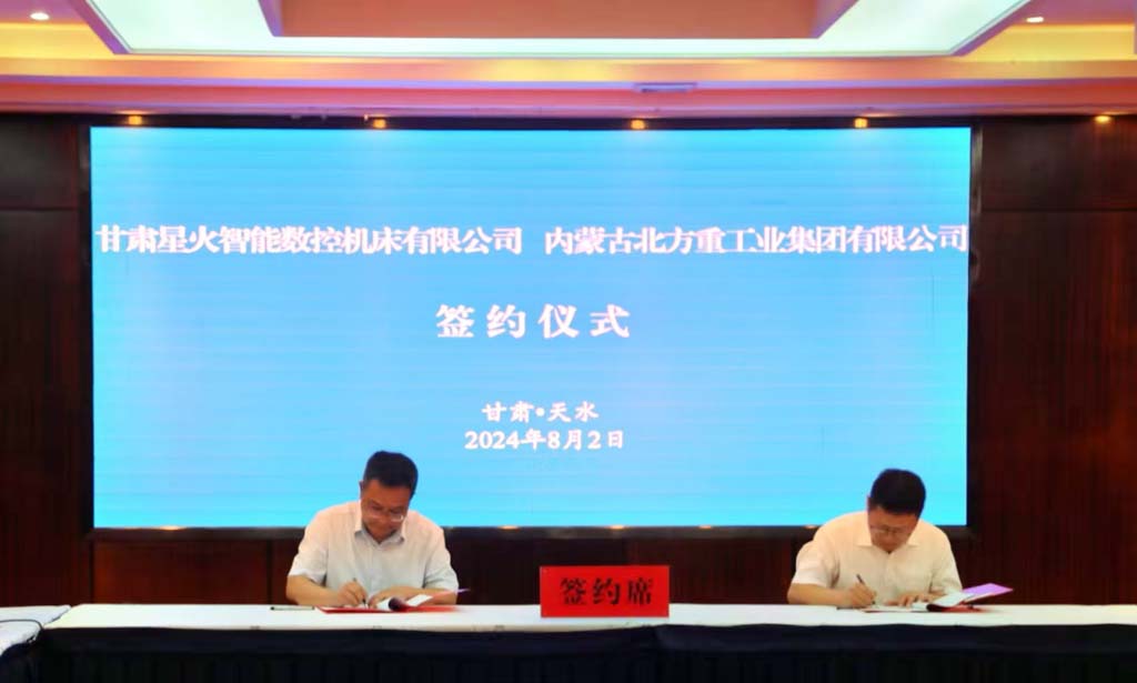 甘肅星火智能數(shù)控機床有限公司黨委書記、董事長蔣保權,內(nèi)蒙古北方重工業(yè)集團有限公司副總經(jīng)理華金虎代表雙方企業(yè)簽署合作協(xié)議。