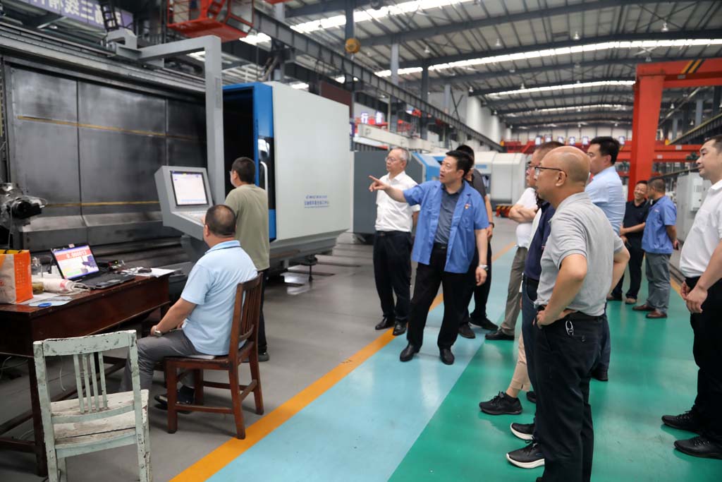 戴岸彤一行在星火集團公司領(lǐng)導(dǎo)劉勝、蔣俊的陪同下深入公司生產(chǎn)加工車間,了解企業(yè)生產(chǎn)流程、產(chǎn)品種類以及設(shè)備配置等情況。在青重加工車間,雙方領(lǐng)導(dǎo)進行了深入的交流和探討,就機床行業(yè)的發(fā)展趨勢、技術(shù)創(chuàng)新以及市場需求等方面進行了熱烈的討論。戴岸彤一行對星火在機床制造方面的專業(yè)能力表示了贊賞,對星火公司的技術(shù)實力和取得的成就給予了充分肯定。