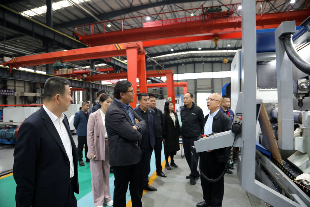 考察組在公司領(lǐng)導(dǎo)陪同下參觀了工業(yè)園重型加工車間、青重加工車間以及數(shù)控加工車間生產(chǎn)現(xiàn)場(chǎng)。蔣俊詳細(xì)介紹了星火的發(fā)展歷程、產(chǎn)業(yè)布局、科技創(chuàng)新等情況以及機(jī)床生產(chǎn)工藝、流程等情況。羅春剛就青重機(jī)床的一些技術(shù)細(xì)節(jié)問題同考察組一行進(jìn)行了深入交流。