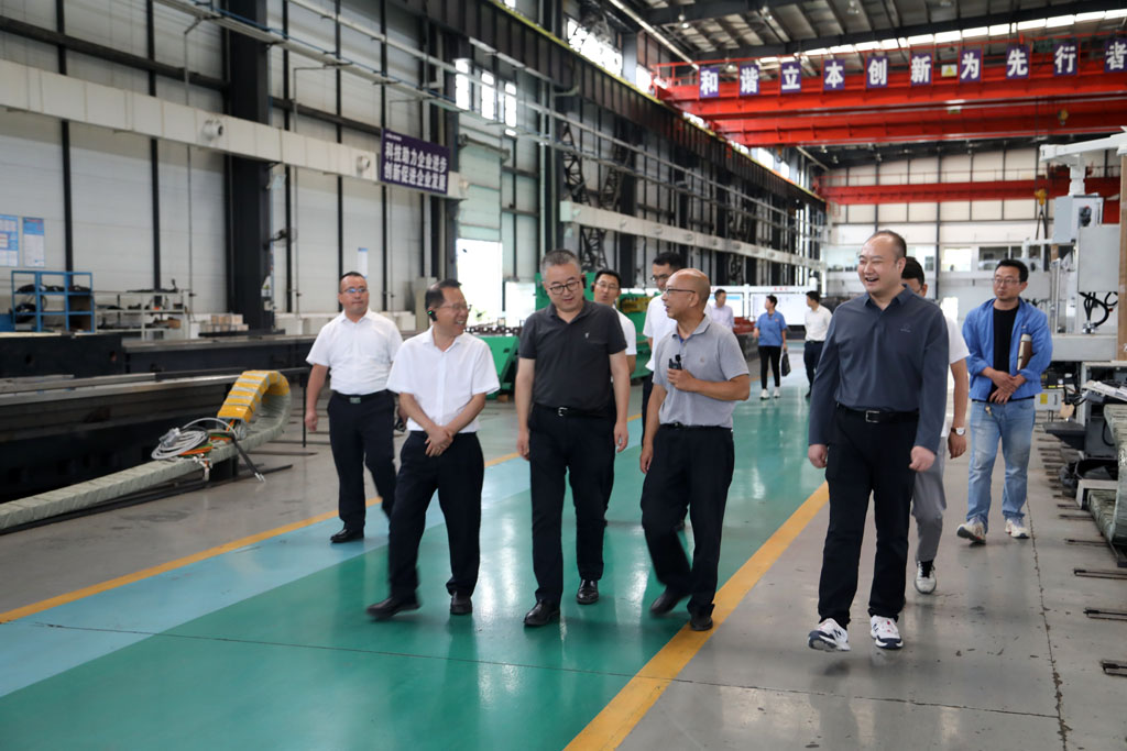 甘肅星火智能數(shù)控機床有限公司黨委副書記、工會主席蔣俊接待調研組一行并陪同參觀了生產(chǎn)現(xiàn)場。