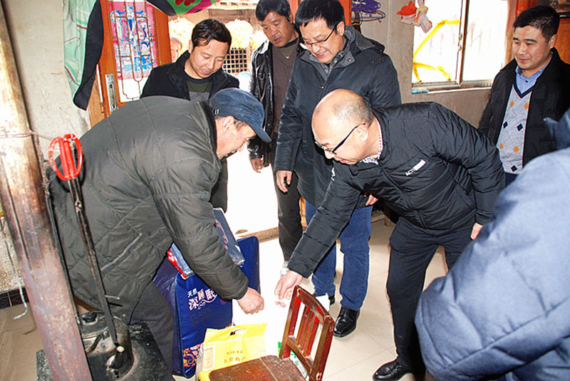 到達年莊村后,村黨支部書記孟克院,村委會主任李應(yīng)祥,大學(xué)生駐村干部安圓圓等人將前來慰問的星火機床公司和鎮(zhèn)領(lǐng)導(dǎo)迎進村部,大家圍坐在火爐旁親切交流。蔣保權(quán)、蔣俊一行了解了村上慰問重點的基本情況后,在鎮(zhèn)、村干部的帶領(lǐng)下,分別深入身患重病、因病致貧的特困戶年建祥等4戶人家中,為他們送上棉被、被套和米、面等慰問品。領(lǐng)導(dǎo)入戶慰問的4戶特困戶,有的因病致貧,有的是孤寡老人,有的是因病返貧,生活比較困難。每到一戶,領(lǐng)導(dǎo)們關(guān)切的詢問其生活狀況、身體狀況、經(jīng)濟來源等,鼓勵他們堅定戰(zhàn)勝目前困難的信心,希望他們相信黨和政府一定會幫助大家擺脫貧困,解決“兩不愁三保障”問題,同時了解了他們及子女的工作生活情況,希望能為他們提供力所能及的幫助。